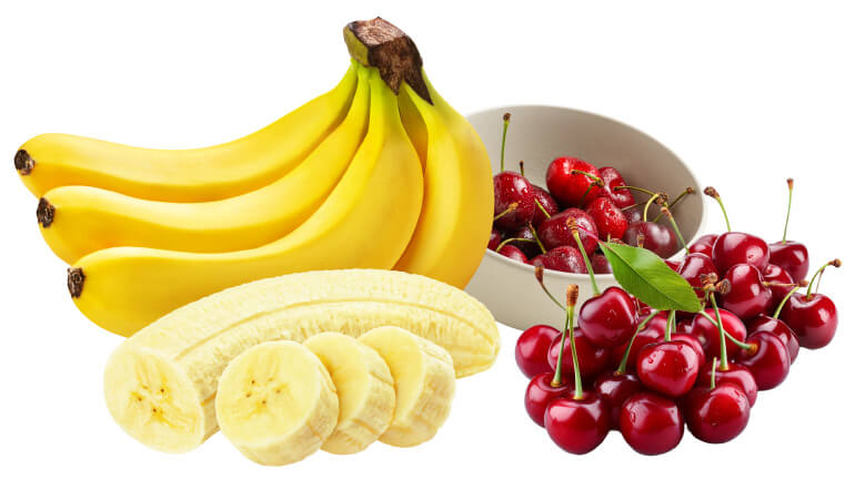 ผลไม้ เช่น กล้วย เชอร์รี่