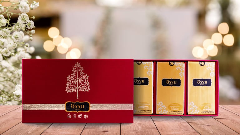 มีทั้งแบบถุงขนาดกระทัดรัด 475 กรัม และแบบกล่องของขวัญเรียบหรู ขนาด 750 กรัม