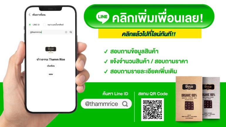 ยังมีข้าวอีกมากมายที่เป็นตัวเลือกสำหรับให้เป็นของชำร่วยงานแต่ง สนใจติดต่อสอบถามข้อมูลสินค้า ขั้นต่ำการสั่งซื้อ รวมทั้งเงื่อนไขในการจัดส่งสินค้า แอดไลน์ได้เลย!