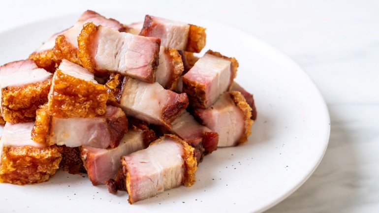 พูดถึงหมูสามชั้น ก็ต้องเป็นเมนูเบสิกที่กินเปล่าก็ได้ ต่อยอดเมนูอื่นก็ดีอย่างเมนู หมูกรอบ