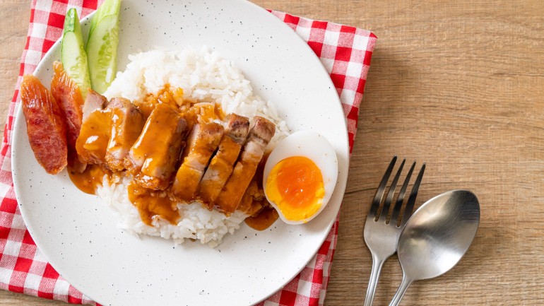 วัตถุดิบแสนล้ำค่าอย่าง หมูสามชั้น ก็ต้องนำมาสร้างเมนูยอดนิยมอย่าง “ข้าวหมูกรอบ”